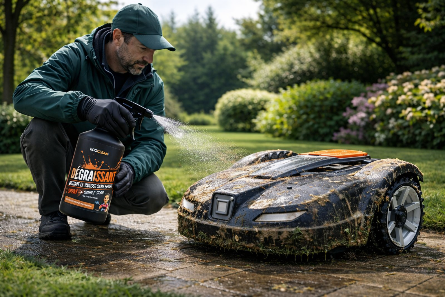 Le pack recommandé EcoClean® permet un nettoyage maîtrisé des robots tondeuses, en limitant l’encrassement, les pannes liées à la saleté et les arrêts inutiles.